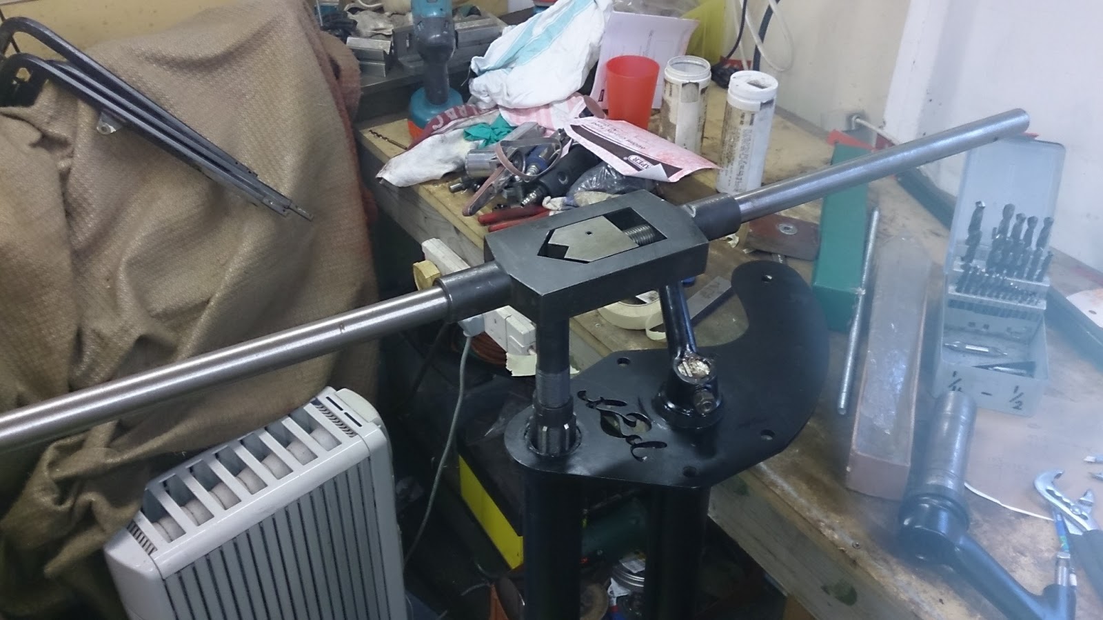 The adjuster bush inside the beam that holds the springs plates in the centre was slid to one side and the plate held with pliers in the hole was attached to the m10 threaded bar. A few blocks of wood held over the trailing arm and the arm was would out with out to much trouble.