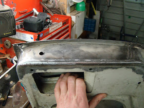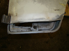 Here is another repair I did when I first started getting the van back together many (many) years ago. Looking back I'm not happy with what I did. The panel was buckled and the curve was more of a fold, the lip at the bottom of the sill was too low compared to the one on the cargo sill. I tried to bend it further up but this just formed another crease.