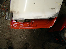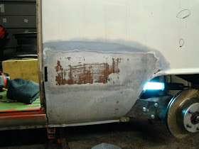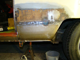 I started using the brush on liquid while I was fitting the rear arch panel. This part of the panel that needed treatment had been left bare metal for about 10 years while the van sat in the garage.