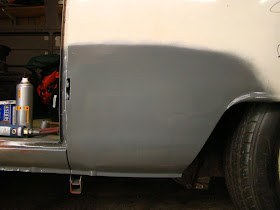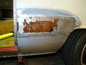 I took the door to collage and panel beat the dents and warps out, using the skin File to find the high and low spots.