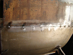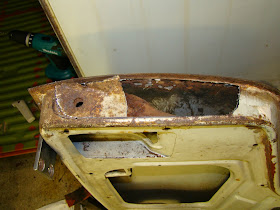 Once the inner skin was repaired I could cut away the outer, to reveal more rust.