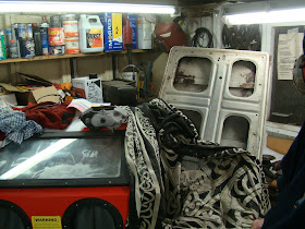 Then stuck it in my sand blaster, there was a little leak of blasting dust as I couldn't quite get the door fully closed.