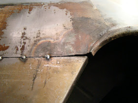 I cut and chain drilled the rusted skin out tidying the edges with a die grinder.