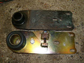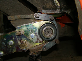 To fit a shock/damper from the 924 A arm to the chassis of the van is probably the biggest problem I've had with converting the rear suspension to IRS. One of the problems is that the curve of the gear box mount kind of gets in the way. Thinking I could buy a shock mount and weld it inside the chassis rails is not that easy.