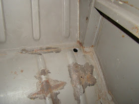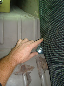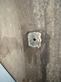 My original intention was to slide the plate up the box section from the outer part of the B pillar sill I needed to repair, but when I slid some wire down the top hole it came out of a big square hole in my new wheel arch, realy not sure why thats there? Eager to see if the hole was wide enough I slid the plate in and then dropped it. Then spent 1/2 an hour trying to dig it out again.