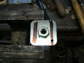 I needed a break and had a suger fix, came back with the idea to use a magnet to hold the plate in position while I cut the wire and fitted the bolt, the wire was a bit of a pain to cut in a small hole but I managed it in the end.