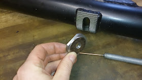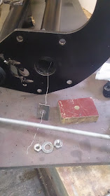 After a lot of pondering and a few trial wack's with a hammer I realised I needed to use a pulling tool get the trailing arms back out. So I made a pulling disc that was threaded and machined just under size of the outside diameter of the trailing arm with a step on it so that it would fit inside with out moving, two flats were filed on its edges so it would fit inside the adjuster slot.