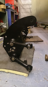 The adjuster bush inside the beam that holds the springs plates in the centre was slid to one side and the plate held with pliers in the hole was attached to the m10 threaded bar. A few blocks of wood held over the trailing arm and the arm was would out with out to much trouble.