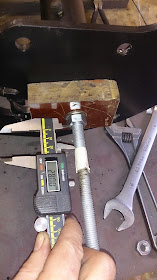 A block of wood and second nut was tightened on to the threaded bar, then using some tape and a measuring tool I screwed down the thread to pull the bar out the desired distance and move the bush back to there correct positions.