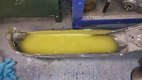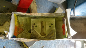 To get under the mount brackets I made a bath with a dam of plastic bottle sides and plasticine