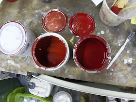 Once dry I taped up the out side and got a coat of red on the under side, I did this because I thought it was the wrong colour,  Who's I idea was it to do a two tone under side.