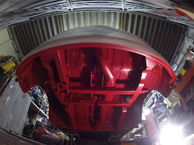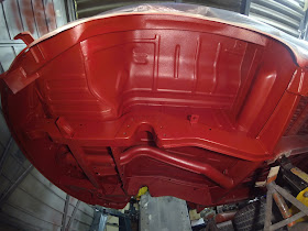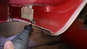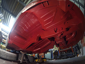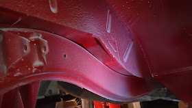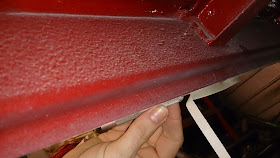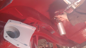 Apart from the work lamp making the photos look orange I am really happy with the results of the re-spray. A second coat of the red helped the deeper red I was after and the clear coat does show up the metallic that's in the red , although no one going to see it.